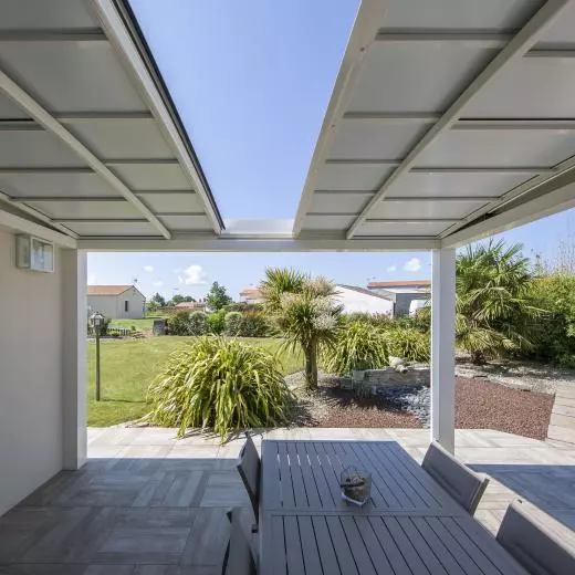 La pergola bioclimatique à toit ouvrant panoramique vous permet de vivre à ciel ouvert en profitant de votre terrasse par tous les temps. Imaginée comme une voiture décapotable, la pergola à toit rétractable libère l’espace et la lumière afin qu’aucune perte de luminosité n’ait lieu au fil des saisons.